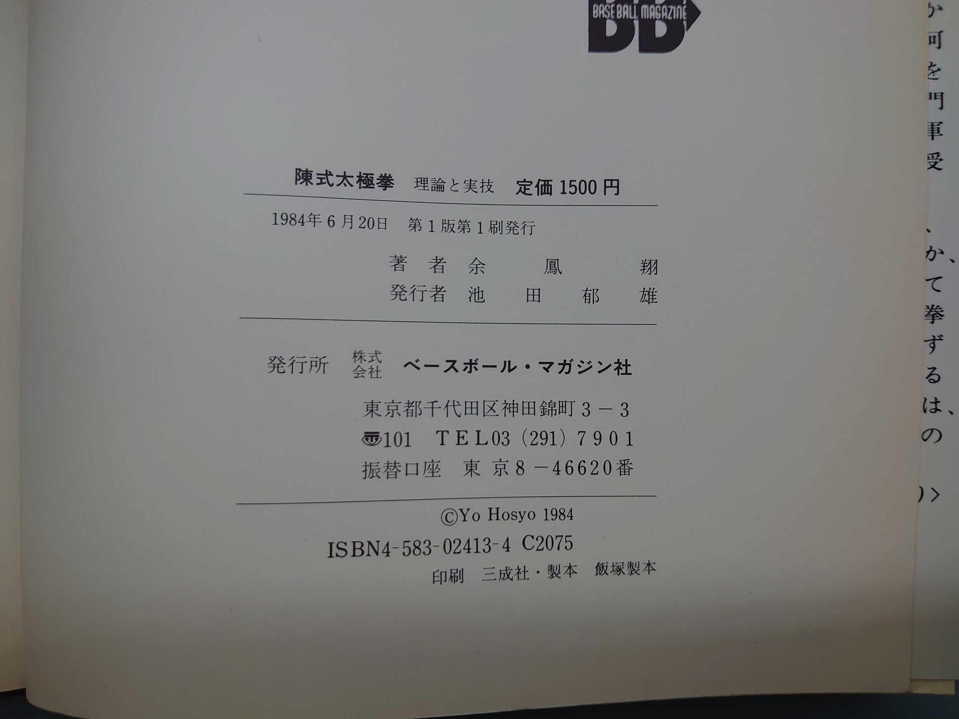 202 陳氏太極拳 理論と実技/余鳳翔/ベースボール・マガジン社