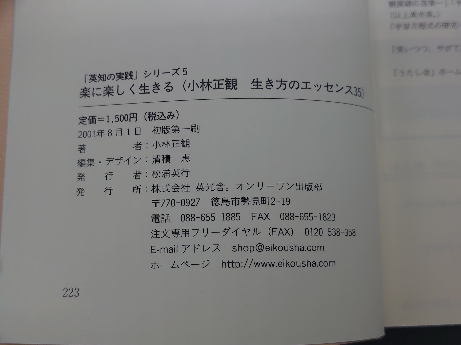 216 楽に楽しく生きる 「英知の実践」シリーズ5/小林正観/英光舎