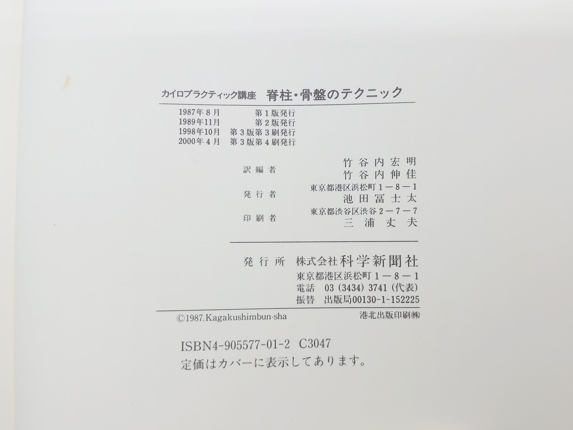 215 "Spine and Pelvic Techniques (Chiropractic Course)" by Hiroaki Takeyauchi and Nobuyoshi Takeyauchi / Chemical Newspaper Company