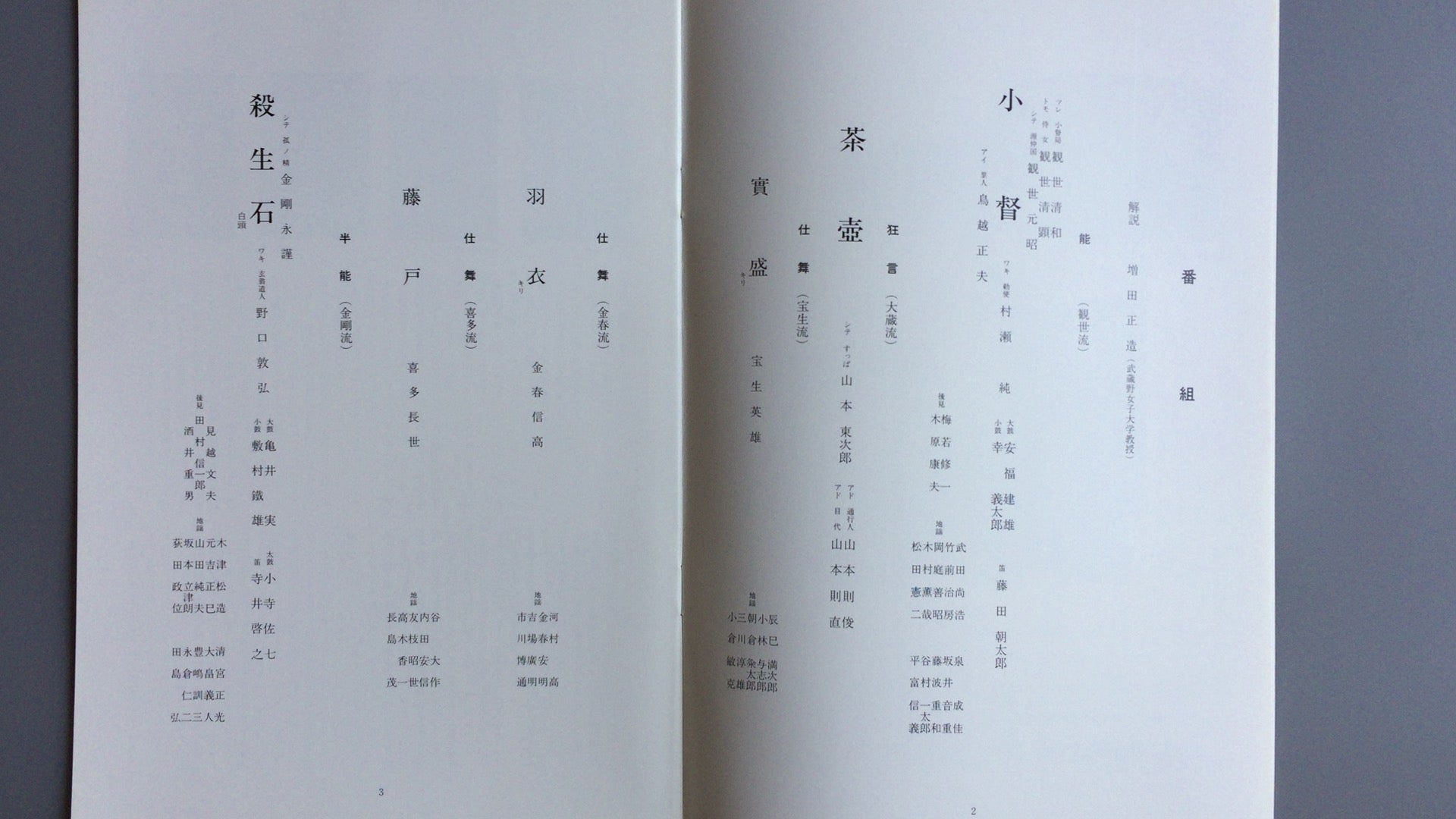 一般社団法人能楽協会東京支部の活動として、毎年7月に実施される「納涼能」の公演パンフレット。公演当日の演目を示す番組表、解説、特集記事などを掲載。