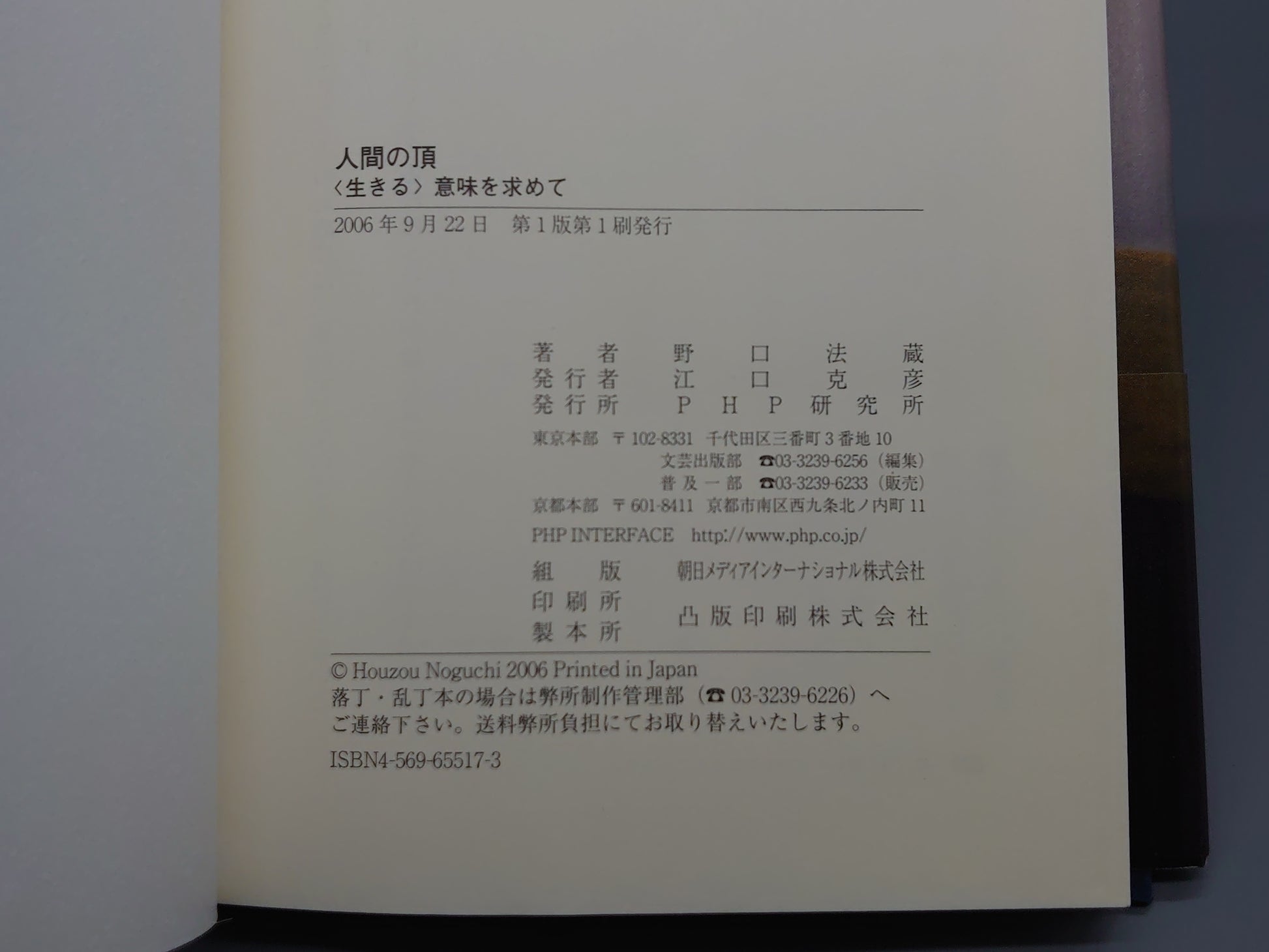 214 人間の頂 〈生きる〉意味を求めて/野口法蔵/PHP研究所