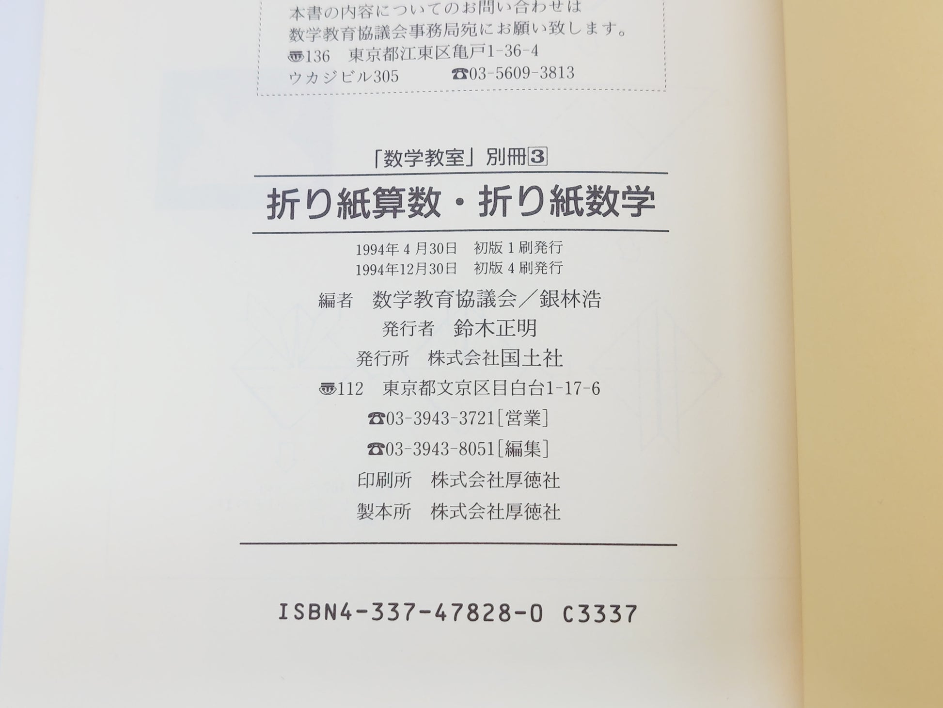 225 折り紙算数・折り紙数学 「数学教室」別冊3/数学教育協議会 銀林浩/国土社
