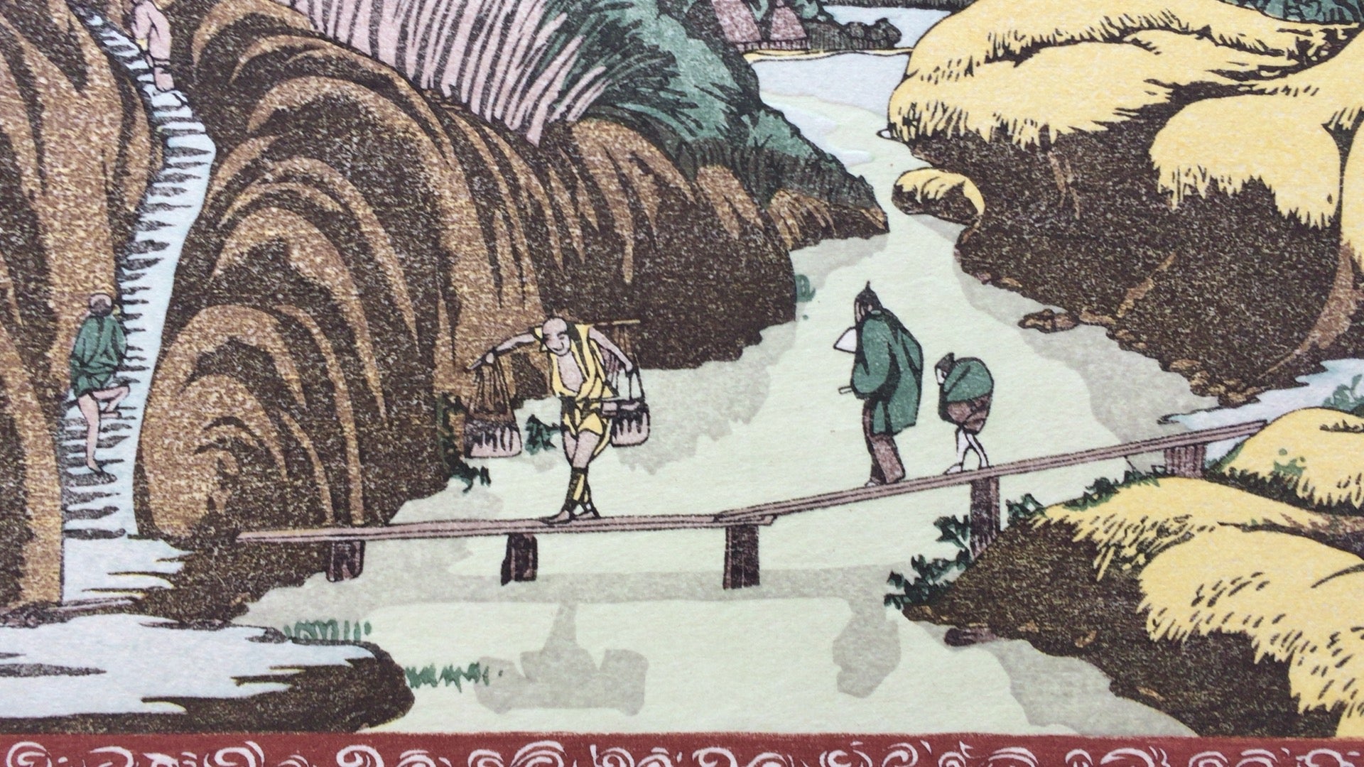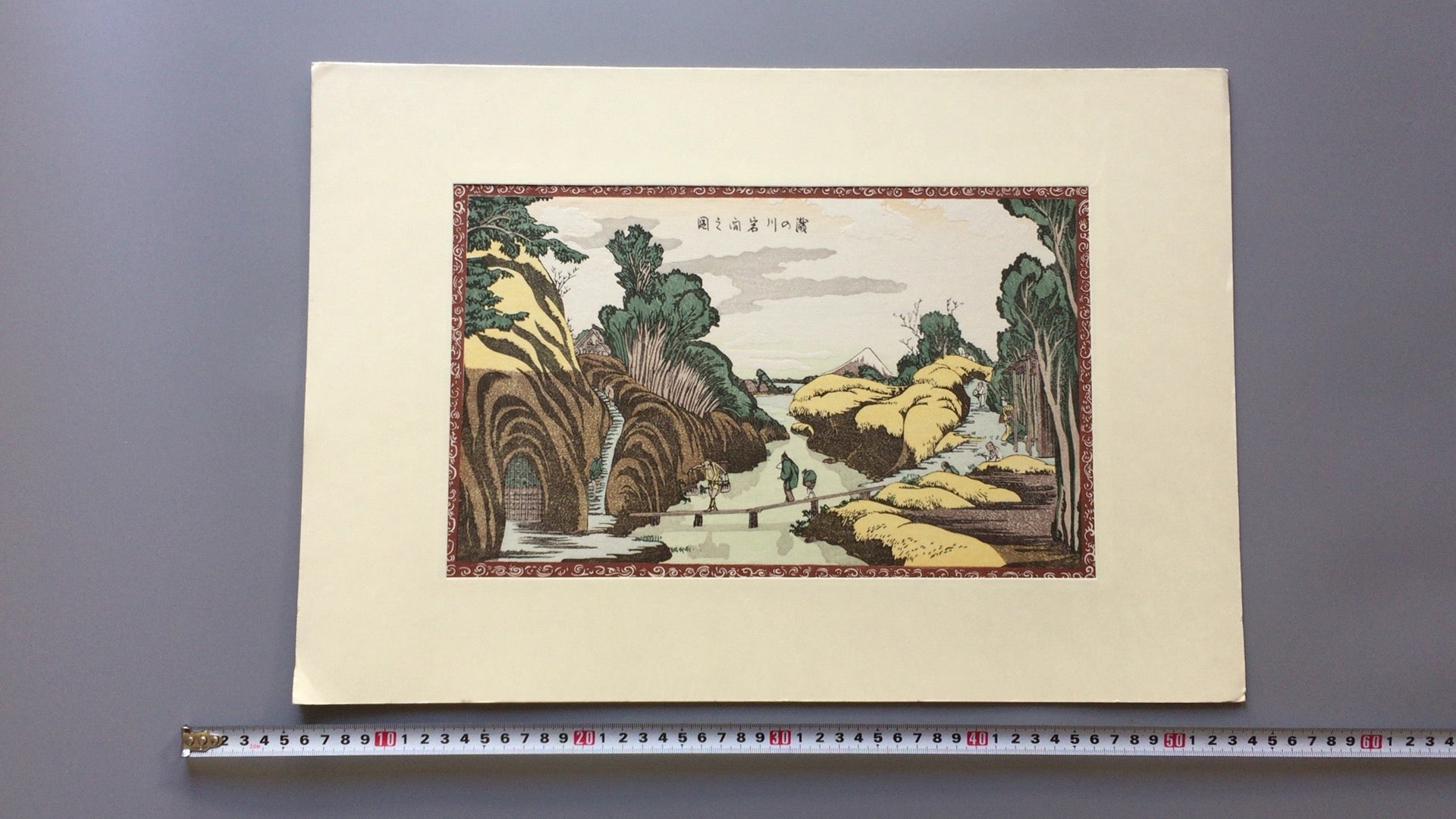 葛飾北斎の「滝の川岩間之図」。複製浮世絵。