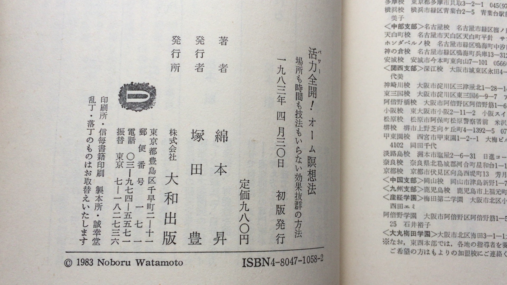 301『活力全開!オーム瞑想法』綿本 昇著/大和出版