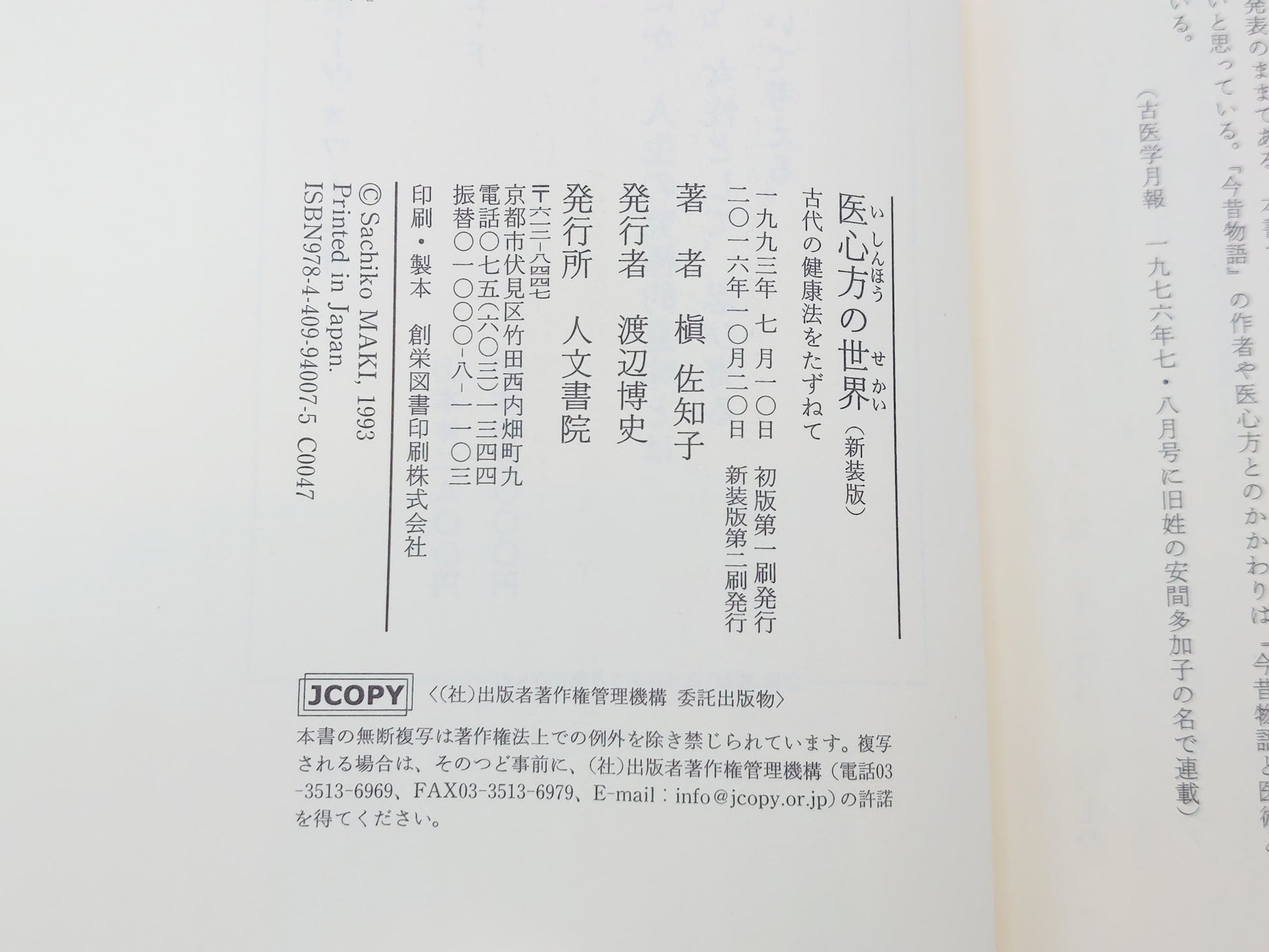 216 医心方の世界 古代の健康法をたずねて/槇佐知子/人文書院
